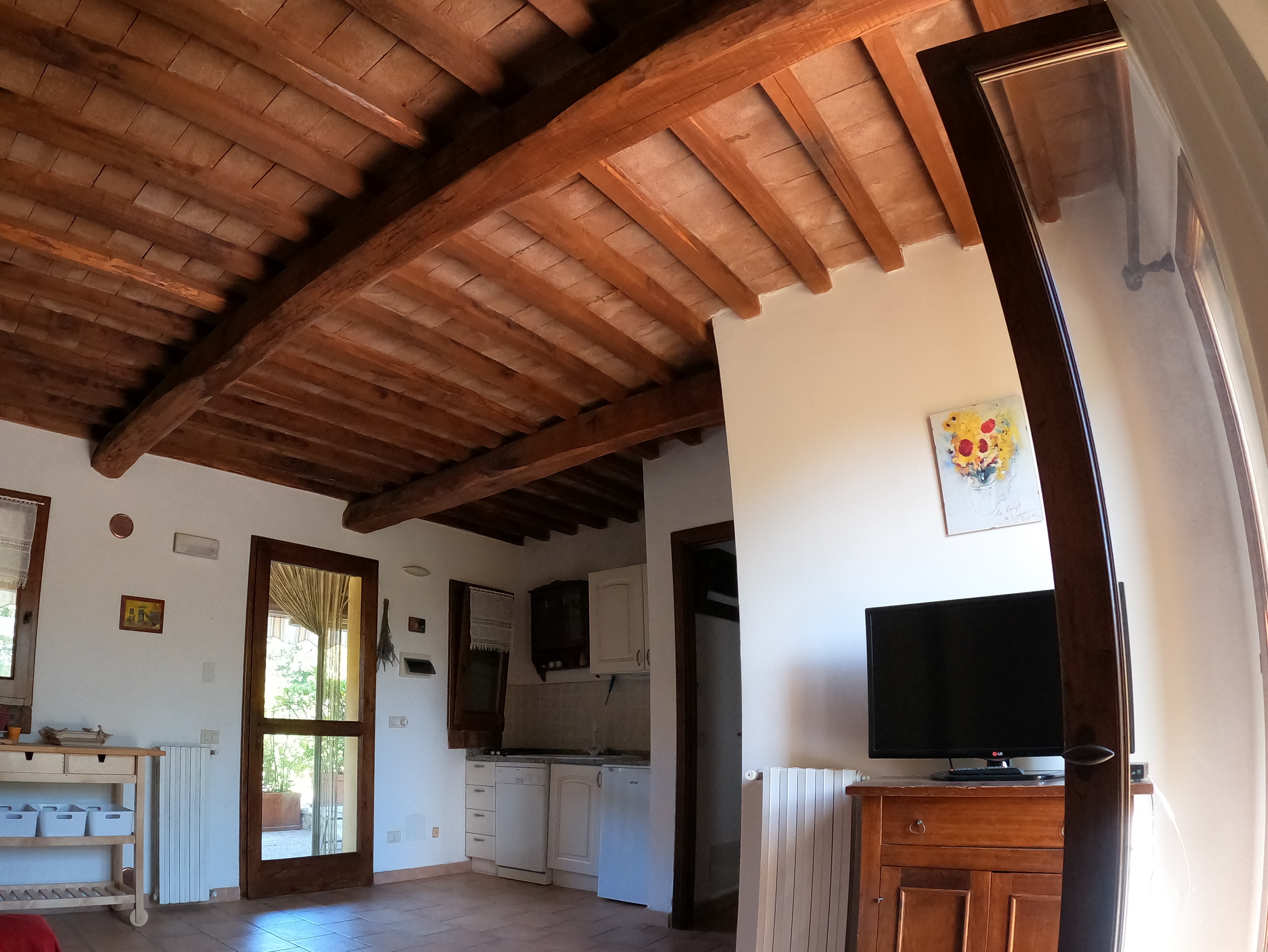 Aus dem zweiten Stock, den ihr über eine Wendeltreppe erreicht, habt ihr einen tollen Blick bis zum Meer.