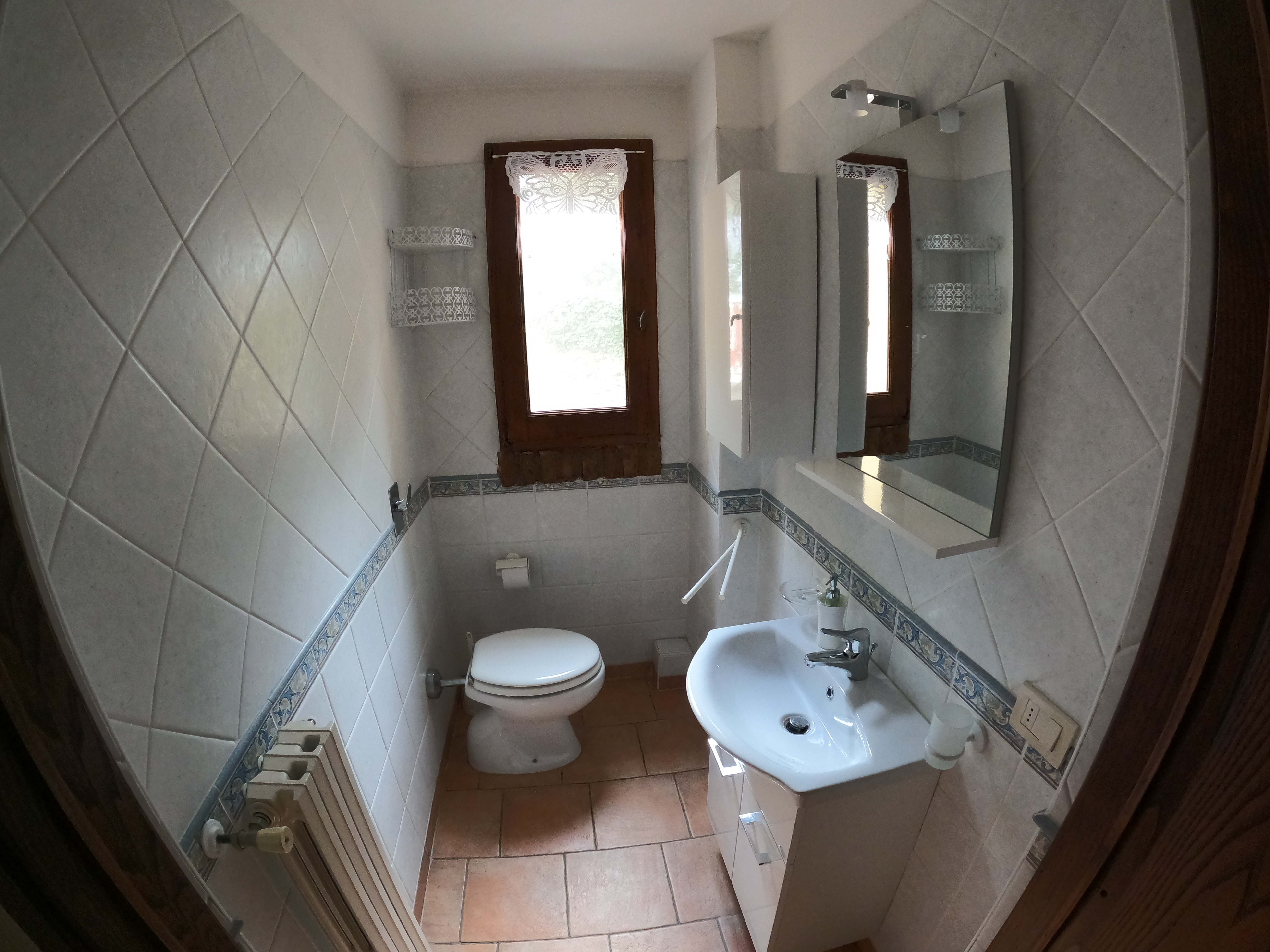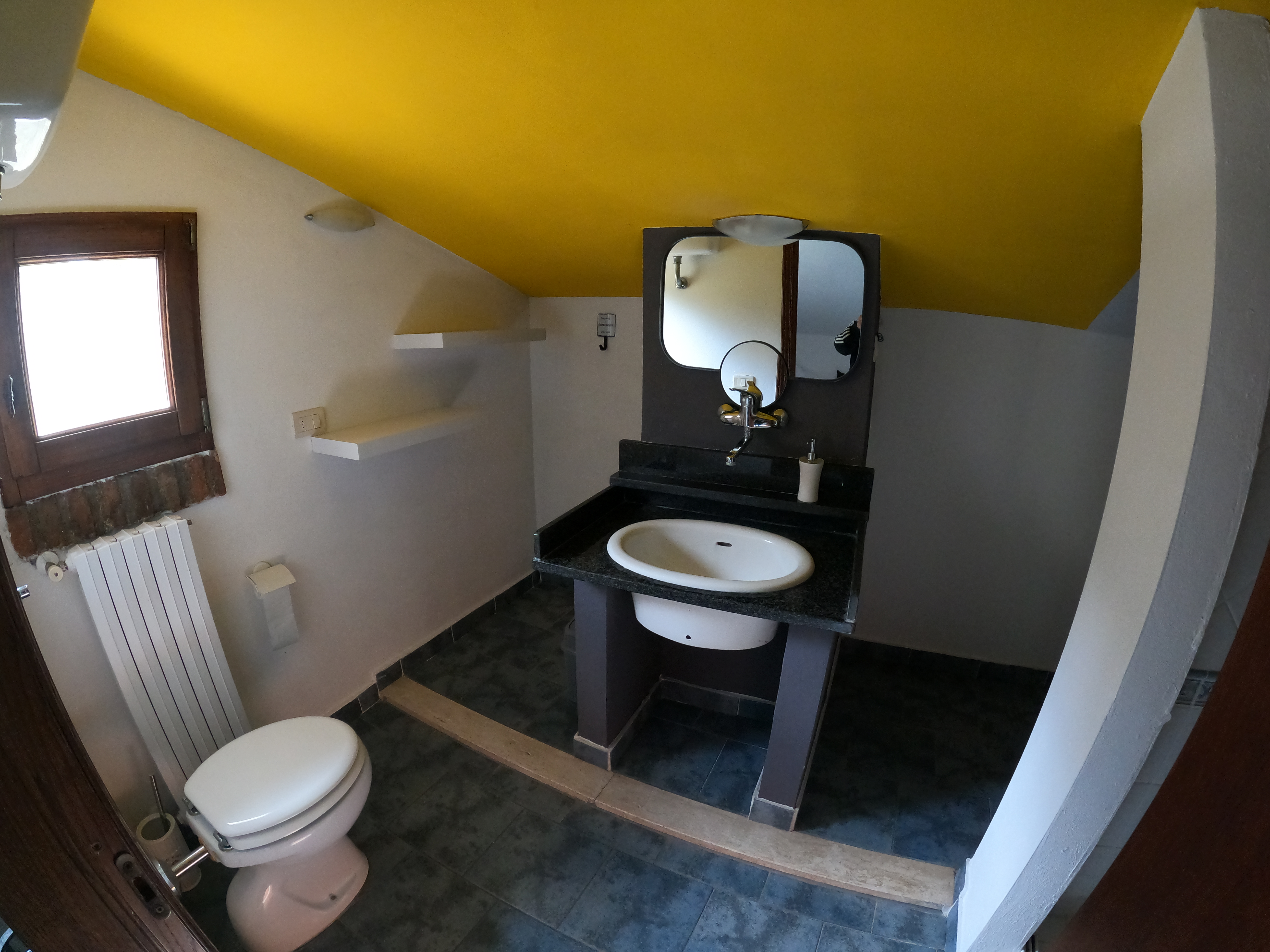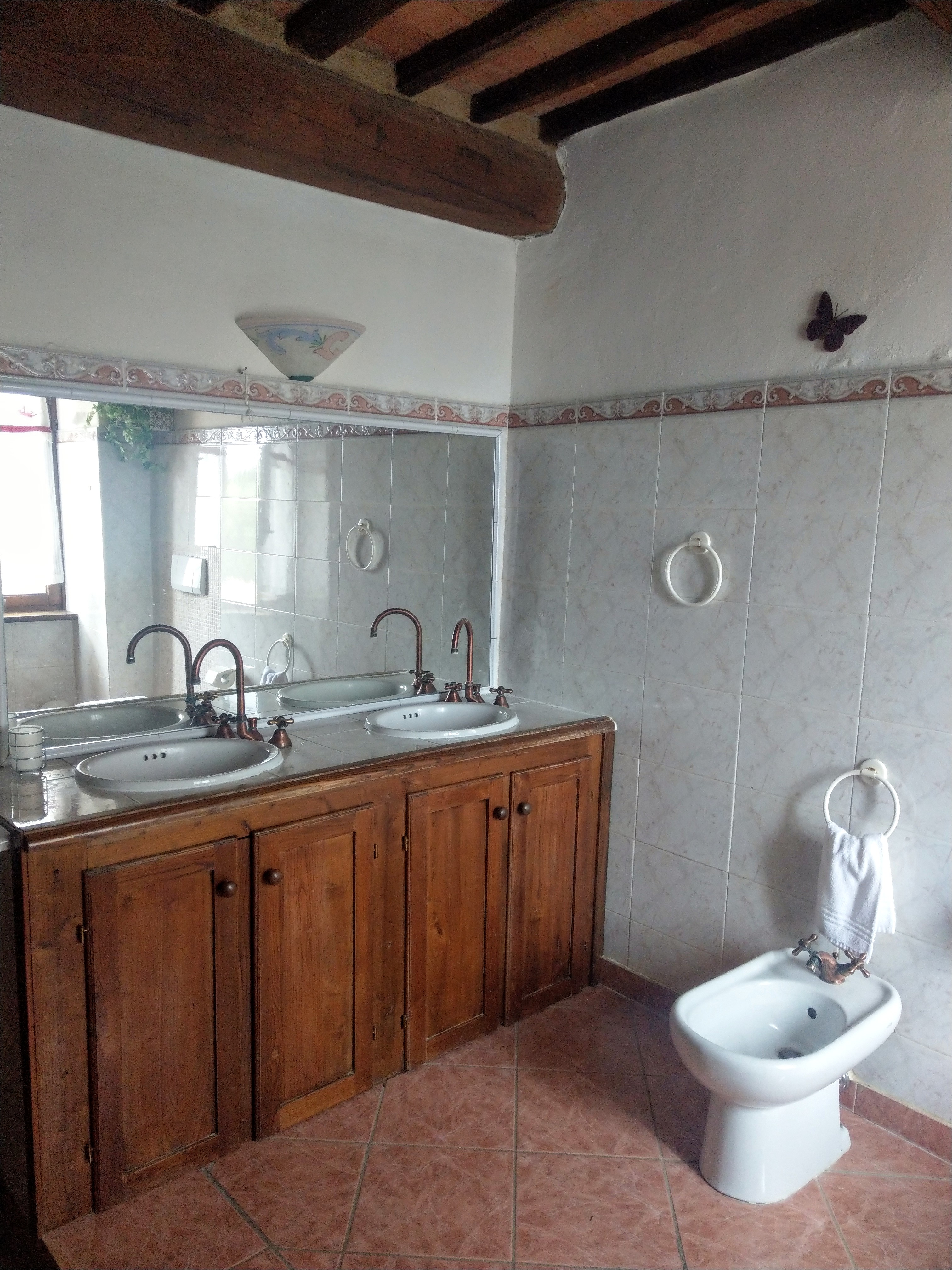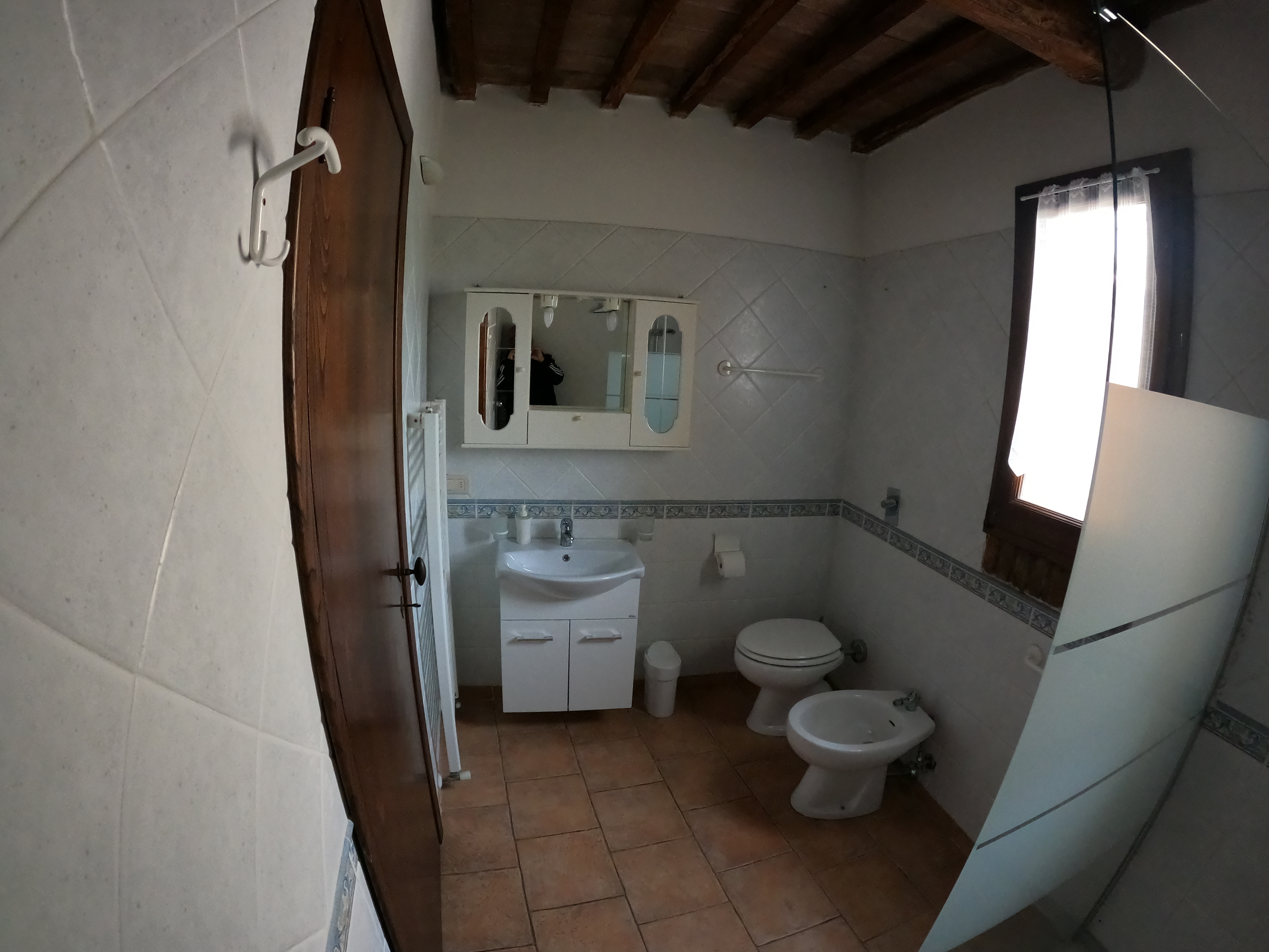 Der erste Stock, den ihr über eine Wendeltreppe erreicht, hat ebenfalls ein Bad mit Dusche. In zwei getrennten Räumen befinden sich jeweils zwei Betten. Der Raum mit den längs aneinander liegenden Betten ist ein Durchgangszimmer.