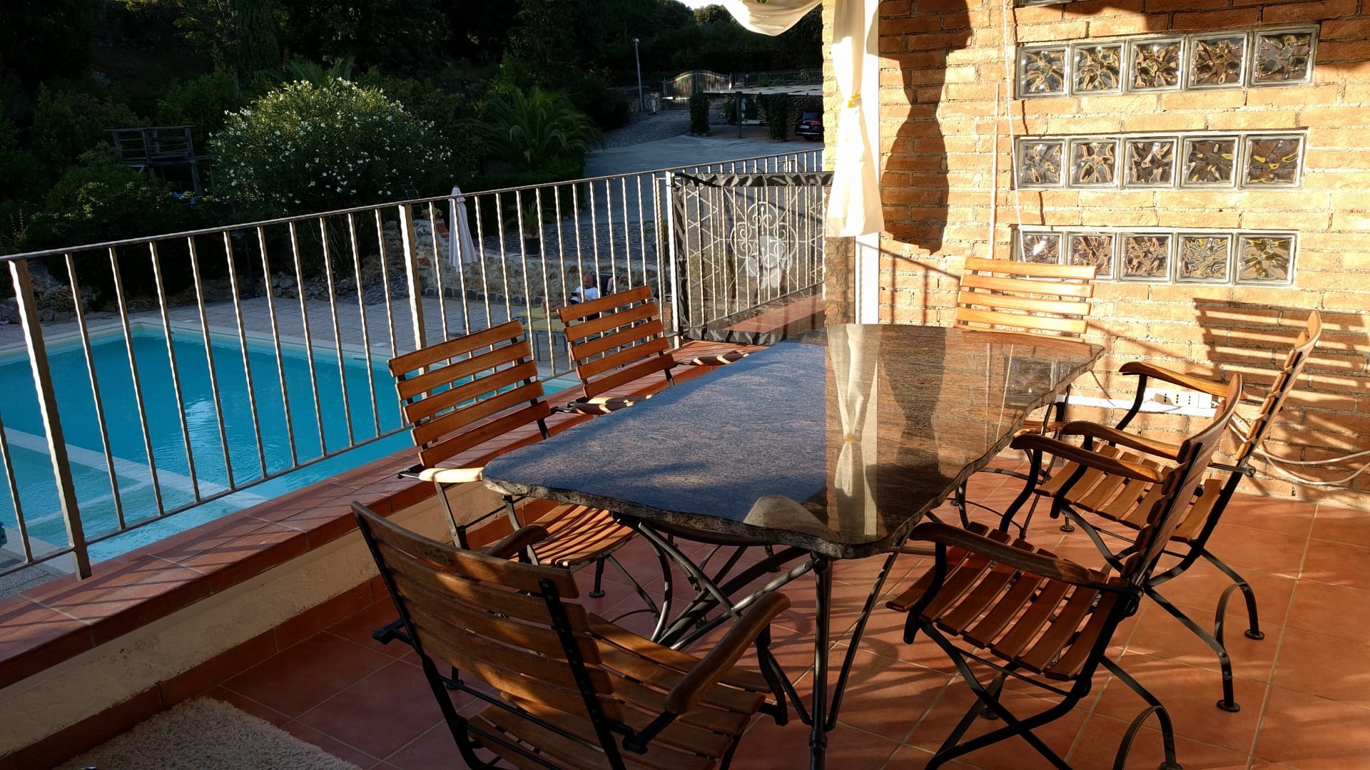 Auch das Triplo hat zwei Terrassen, beide sind überdacht. Von der einen Terrasse aus hat man beste Sicht auf den Pool.